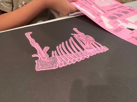シールを使って、丹波竜の骨格復元にチャレンジ。