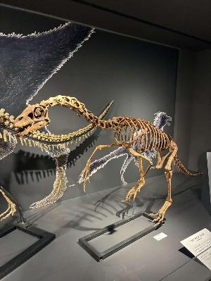 プロバクトロサウルス(鳥脚類)の全身骨格(レプリカ)をクリーニング室の前で展示しております。